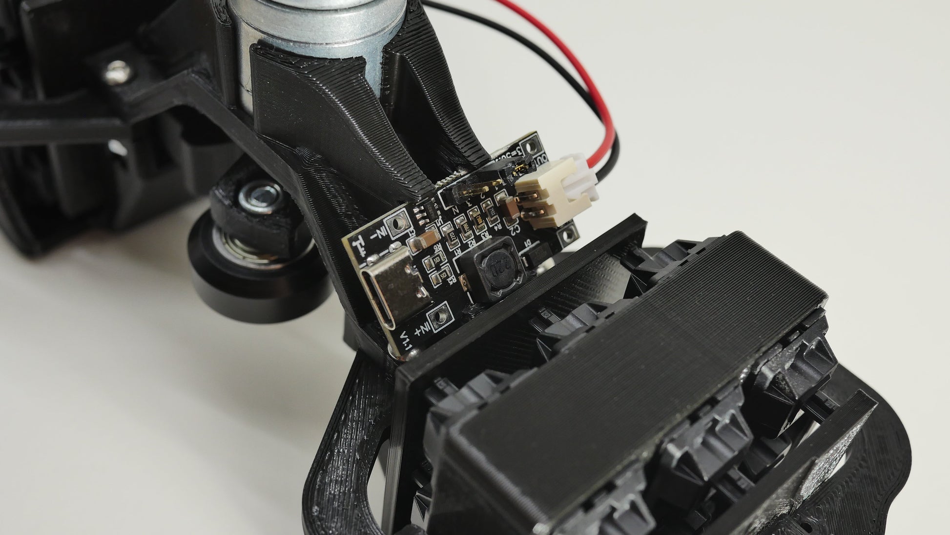 Machine with motor, wheels, and boost converter come fully pre-assembled. A 2mm hex key is used to take apart the machine.