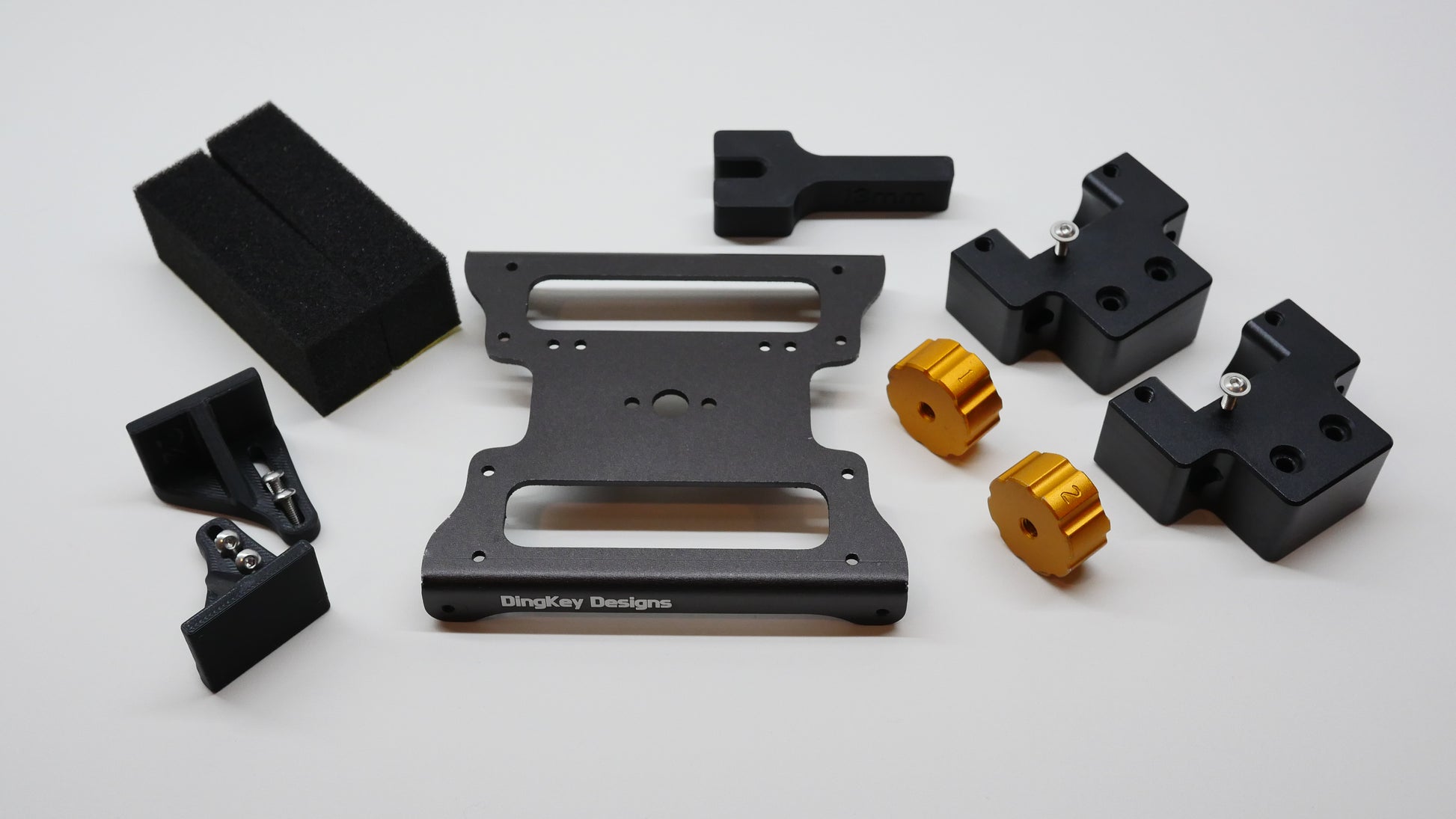 Featuring a beautiful black and gold anodized finish, this new adjustment kit also enables the use of the dampening foam while the off-center kit is installed.